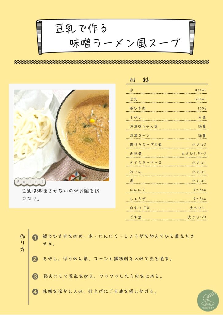 豆乳の味噌ラーメン風スープをご紹介します。